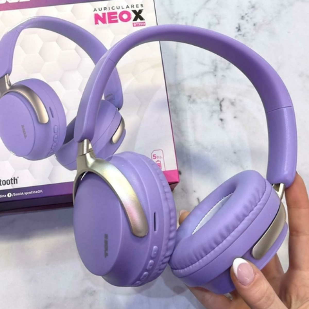 El Soul Neox BT250 en tono violeta combina personalidad y rendimiento en un auricular pensado para quienes disfrutan la música como parte esencial de su día. Su diseño ligero y envolvente crea una sensación de refugio sonoro, donde cada melodía fluye con calidez y equilibrio.