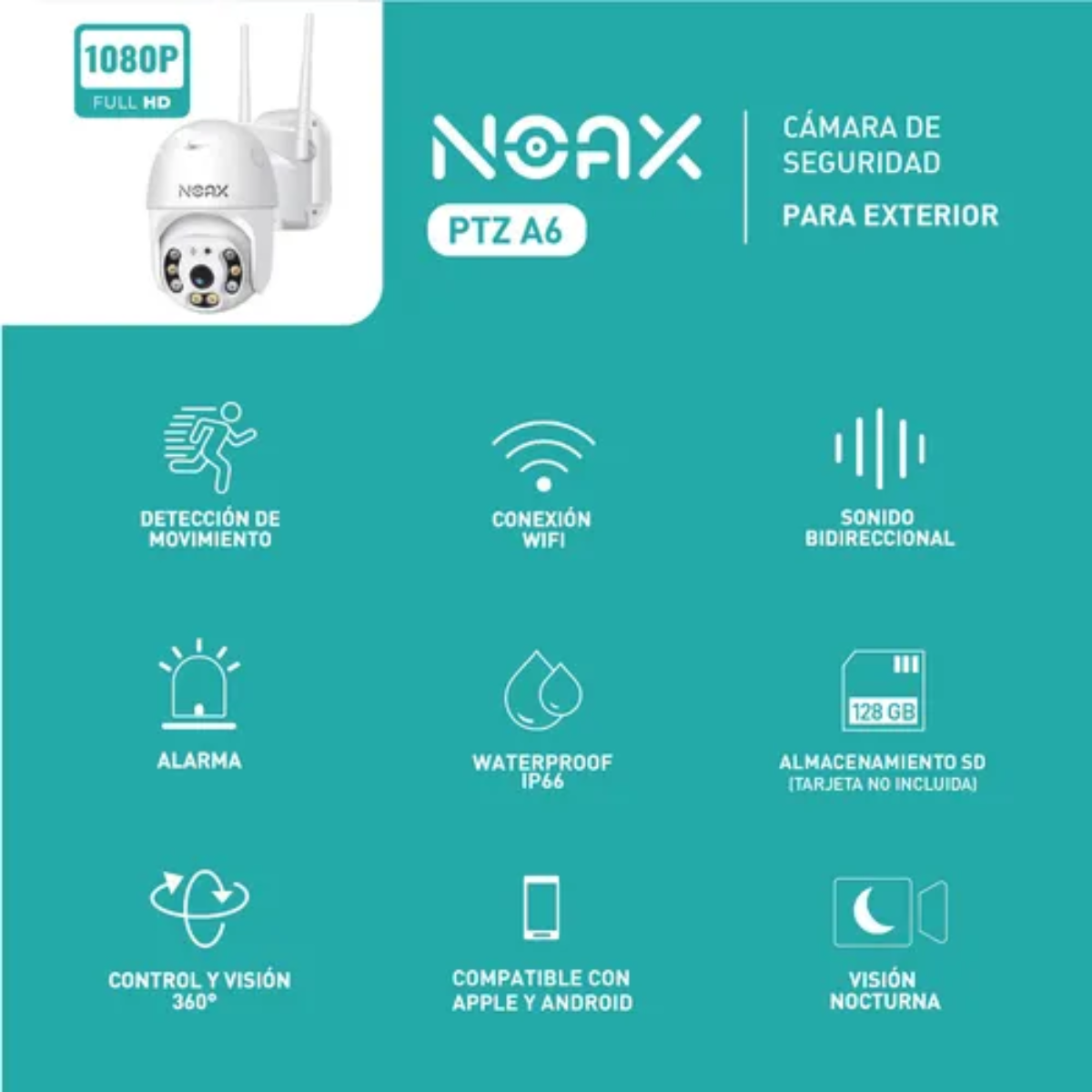 La Cámara de Seguridad Noax PTZ A6 combina tecnología avanzada y robustez en un diseño pensado para proteger tu hogar o negocio con eficiencia y estilo. Su lente con movimiento panorámico y zoom te permite observar todos los ángulos sin perder detalle, mientras la visión nocturna asegura que nada escape, incluso en la oscuridad.