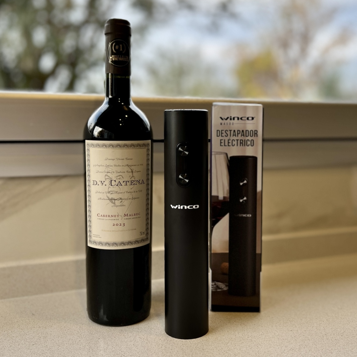 El Sacacorcho Eléctrico Winco W4500 redefine la experiencia de abrir una botella, combinando diseño, practicidad y placer en un solo gesto. Su estructura metálica, sobria y elegante, se convierte en el aliado perfecto para cenas, celebraciones o ese momento íntimo de relax al final del día.