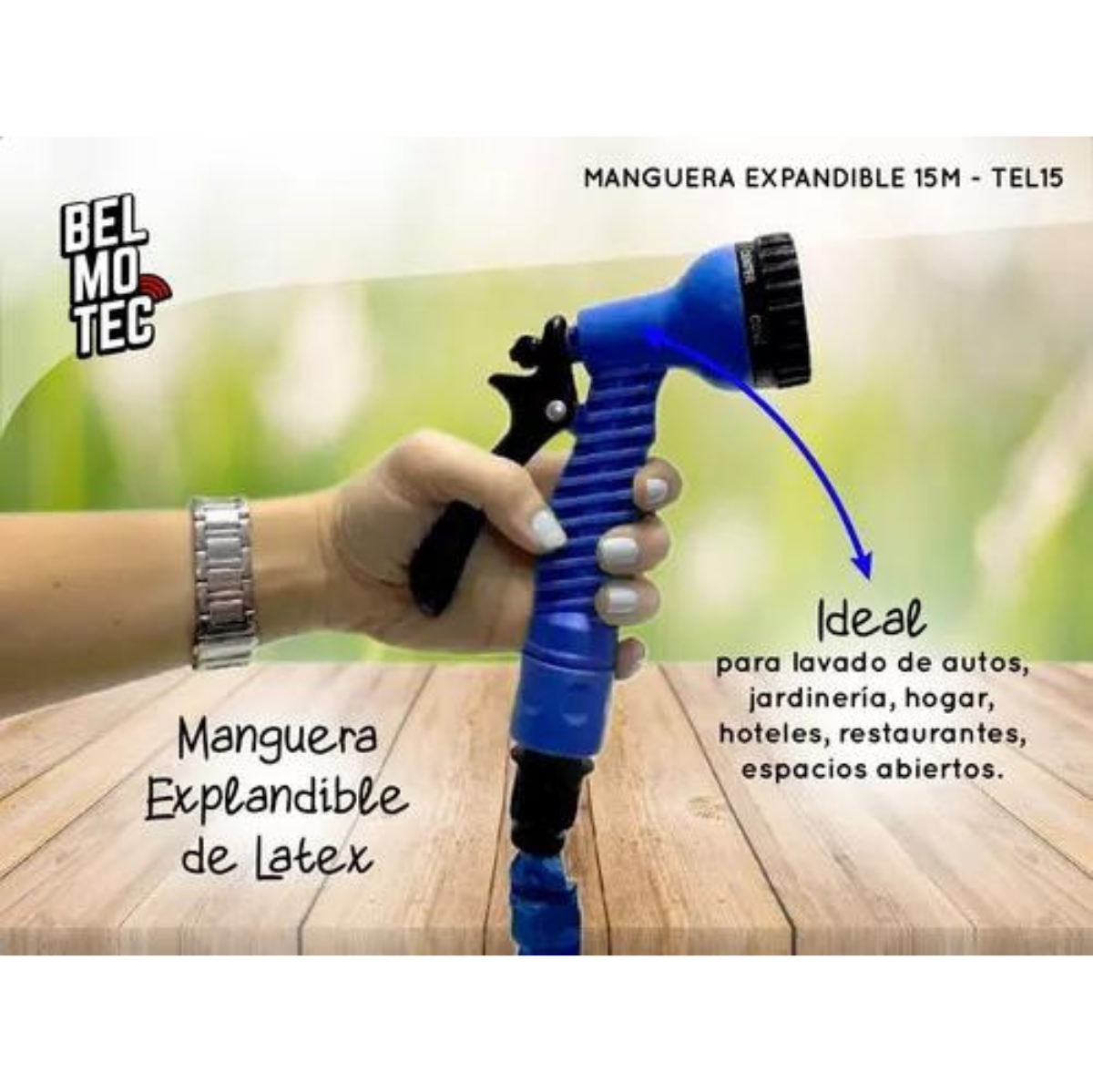 Manguera Reforzada Para Riego Extensible 15 Mts 50 Ft Regar Color Azul